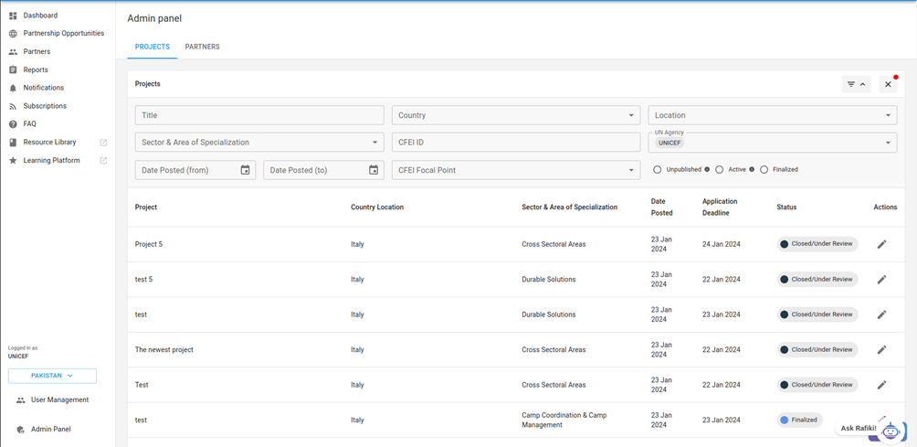 Admin Functionality 1: Enable UN Users to Modify Application Deadlines for Partner Applications