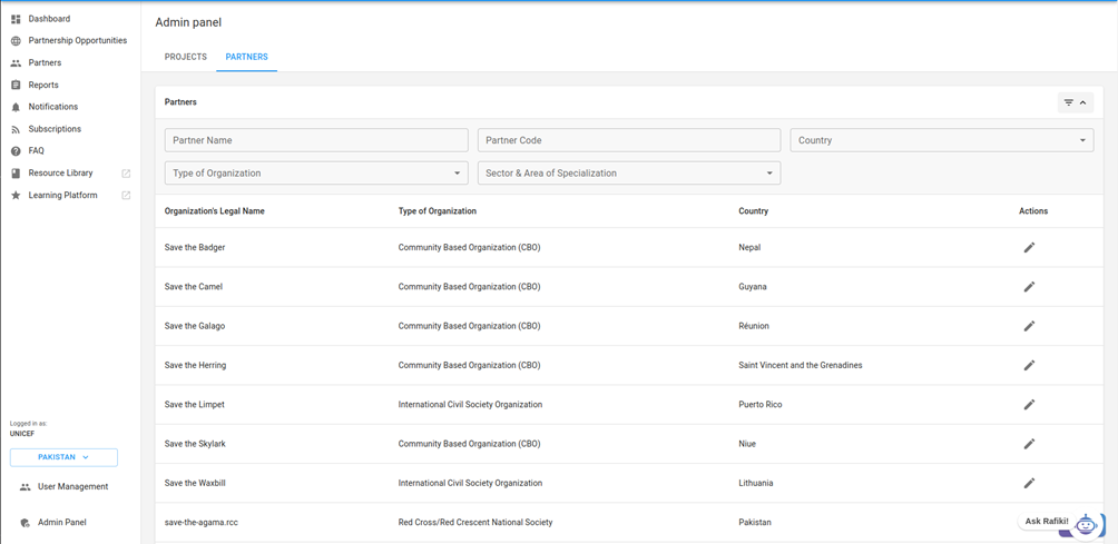Objective: Enhancing control over partner user accounts, this feature allows administrators to manage user roles and account statuses effectively. It ensures that the right individuals have access to the system and that user accounts are kept up-to-date.